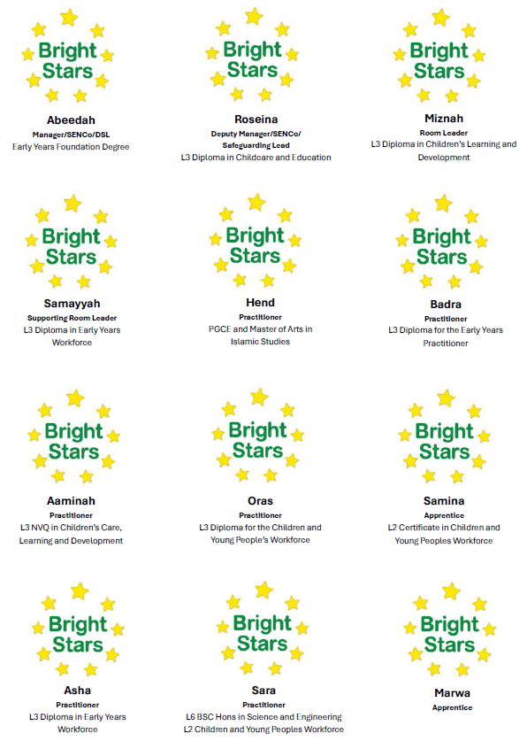 Staff Meet our dedicated staff at Bright Stars Nursery Share this: Click to share on X (Opens in new window) X Click to share on Facebook (Opens in new window) Facebook Like Loading...